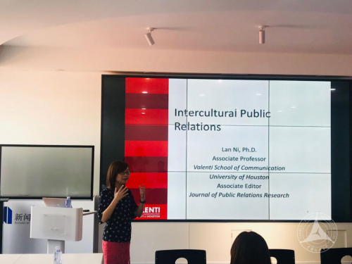 倪岚老师共带来了题为“跨文化公共关系和跨文化能力”和“英文论文写作与发表”的两场讲座。在第一场讲座中,倪岚老师从自身科研经历出发,介绍了自己的科研领域,就其中的“跨文化公共关系”话题与师生们展开交流。倪岚老师指出,对跨文化公共关系的研究,首先要明确传播中的主体、主体的能动性和传播发生的动因这“三要素”,它们共同构成了跨文化研究的视野框架。同时,跨文化传播中的文化多元与碰撞不可避免,不同的文化背景、认知路径、情感调节、个体性格等都是影响跨文化传播和传播者能力的重要因素。
