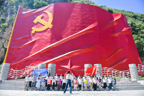 (通讯员 陈逸飞)6月30日上午,新闻学院师生党员、预备党员、团员骨干 50 余人一同前 往房山云霞岭地区,开展庆祝“七一”系列爱国主义教育活动。师生团队由新闻学院党委书记裴鸣带队,首先来到《没有共产党就没有新中国》的创作地堂上村,在党旗前共唱《没有共产党就没有新中国》《我们的新时代》《阳光路上》三首经典红歌,师生歌声嘹亮,响彻山间。