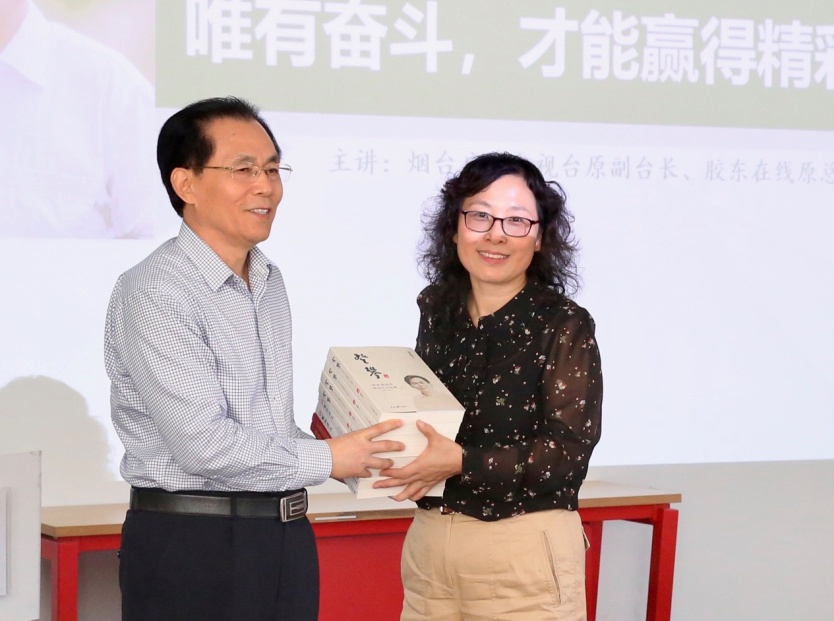 赠书仪式后,邓兆安以“唯有奋斗,才能赢得精彩人生”为题,从五个方面深情回忆了自己从报纸通讯员做起,到电视再到网站工作41年的新闻职业生涯,以生动而丰富的人生经历和典型的案例,深入剖析了从一名农民出身的通讯员成长为有责任、有担当,并多次获得新闻最高荣誉的老新闻人的奋斗历程。