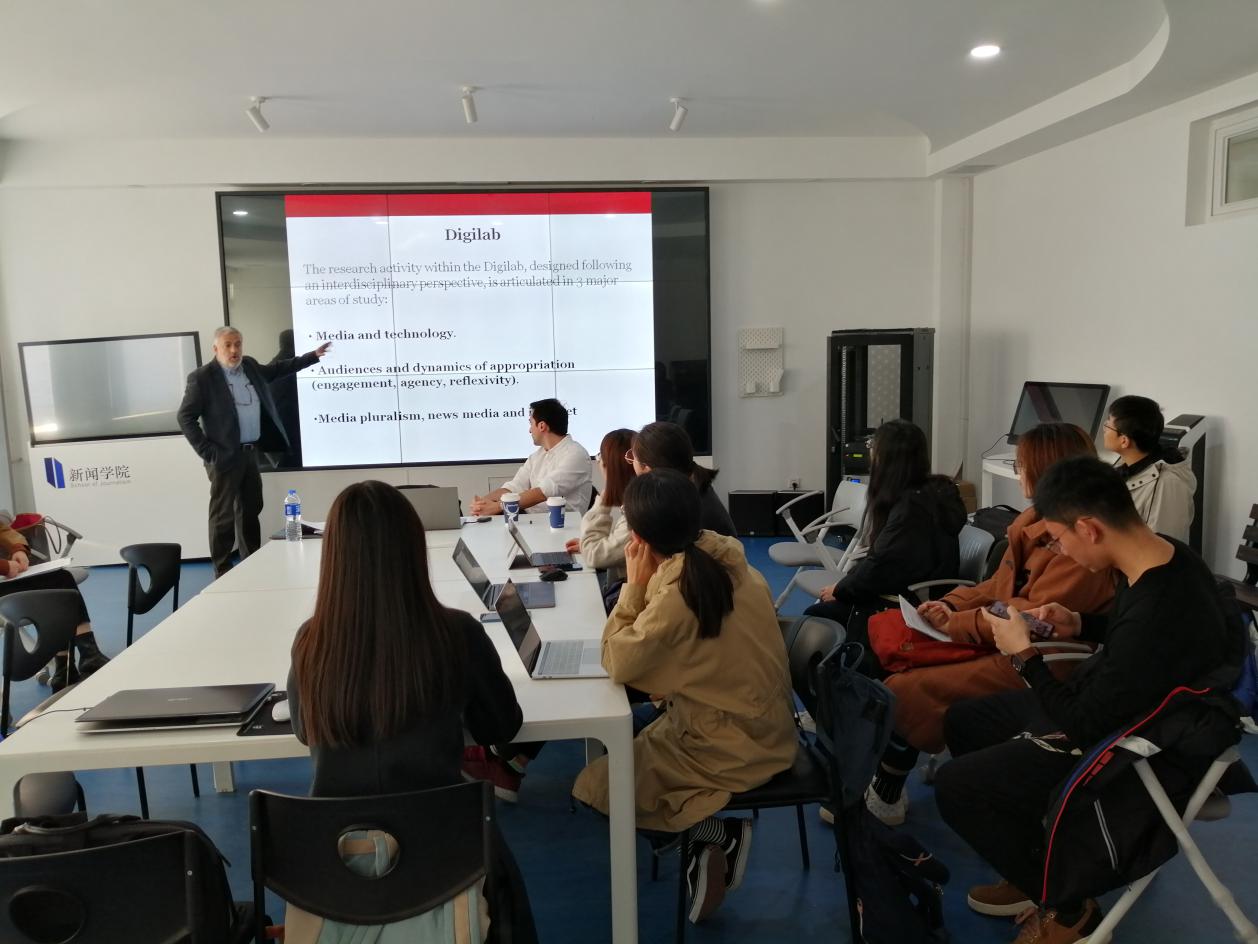 (通讯员 陆佳怡 宋志鑫)受学校“双一流”学科建设经费资助,新闻学院于10月28-29日和11月7-9日分别举办“海外学者工作坊”和“海外主题工作坊”,来自香港浸会大学和西班牙布朗卡纳大学的3位教授先后担任主讲。新闻学院副院长曹培鑫教授分别与3位教授就院际科研合作进行了交流,工作坊分别由新闻学院张志华副教授、刘杰尘博士和邹欣副教授主持。