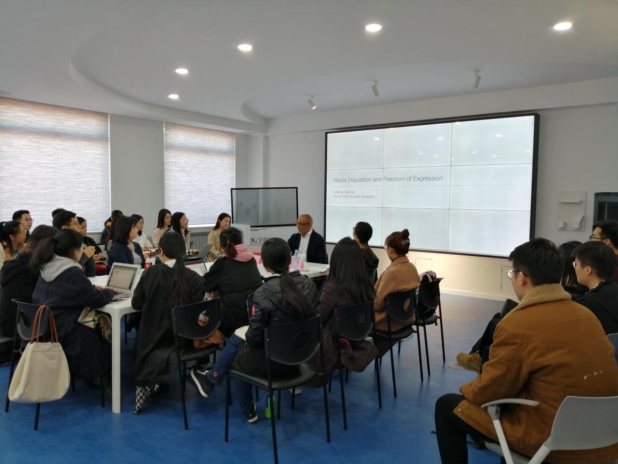 工作坊期间,在场师生与Cherian George教授进行了实时互动,就感兴趣的话题,进行了深入的探讨。“海外学者工作坊”结束后,参与师生普遍反映受益良多,并表示,“对与国内不同的媒介体制有了更深入的了解。”