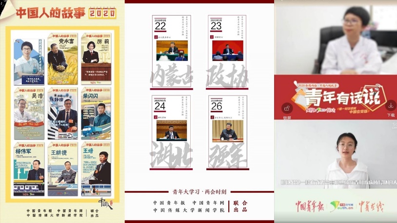 两会期间,同学们紧跟会议进程,以流畅美观的动态海报、规范清晰的“学习日签”,配合前线记者老师。同时,同学们也充分发动在校大学生的优势,发动全国各地青年群体,以Vlog短视频的形式,与代表委员“隔空”互动,讨论关系国计民生的提案和广大人民群众关心的热点话题。