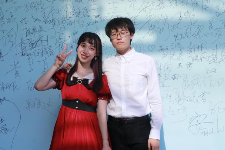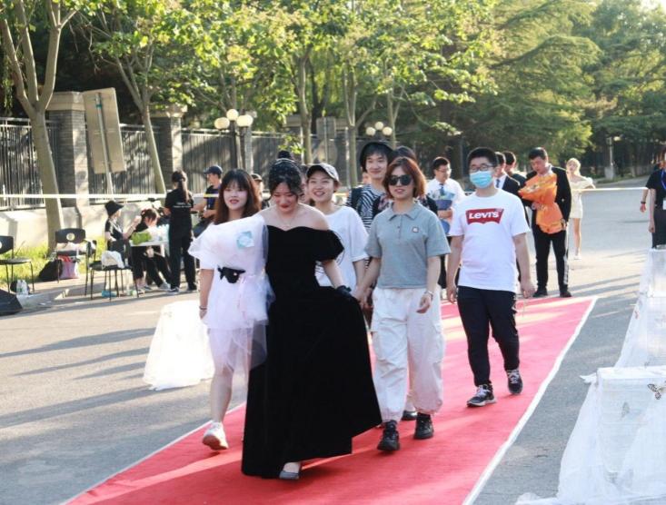 在晚会正式开始之前,学院还举行了活泼浪漫的走红毯仪式,下午三点,仪式正式开始,在老师同学、朋友亲人的祝福下, 2021届全体毕业生和部分2020届毕业生依次踏上位于国重大楼前的红毯,以最好的精神面貌向学校学院告别。另外,红毯现场还设置了留言板,毕业生们在此签下名字并合照留念。